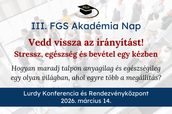 Csatlakozz hozzánk a Lurdy Házban 2026. március 14-én, az FGS Akadémia különleges napján, hogy megtaláld és megszüntesd a benned futó programokat, és három területen – pénz, egészség, stressz – egyszerre kapj működőképes, mérhető megoldásokat.